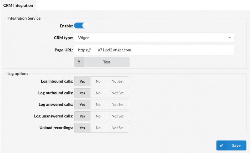 To setup Vtiger integration, populate the page URL sourced from vtiger into the Page URL field.