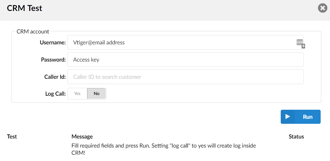 To integrate with Vtiger, we need: