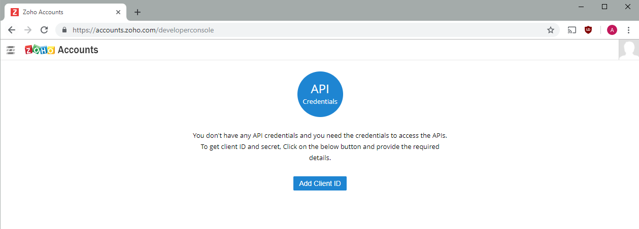 The Zoho Admin needs to create an API entry on their Zoho account by going to this link: https://accounts.zoho.com/developerconsole
